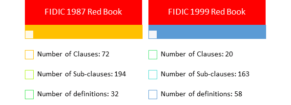 Compared to the FIDIC 1987 Red Book, the quantity of Clauses and sub-clauses has been minimized – most likely due to restructuring of the clauses and sub-clauses as analyzed in Section 2 above.