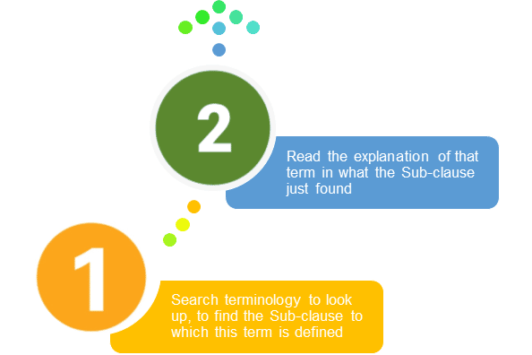 In the FIDIC 1999, the definitions are arranged in groups of topics (See more at Section 3.1 above). Therefore, users must follow two steps (outlined below) to investigate the meaning of a term: