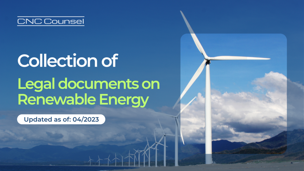 CNC hereby presents a collection of legal documents on Renewable Energy updated to 04/2023. This list of Renewable Energy legal documents is arranged according to three basic rules, as follows: