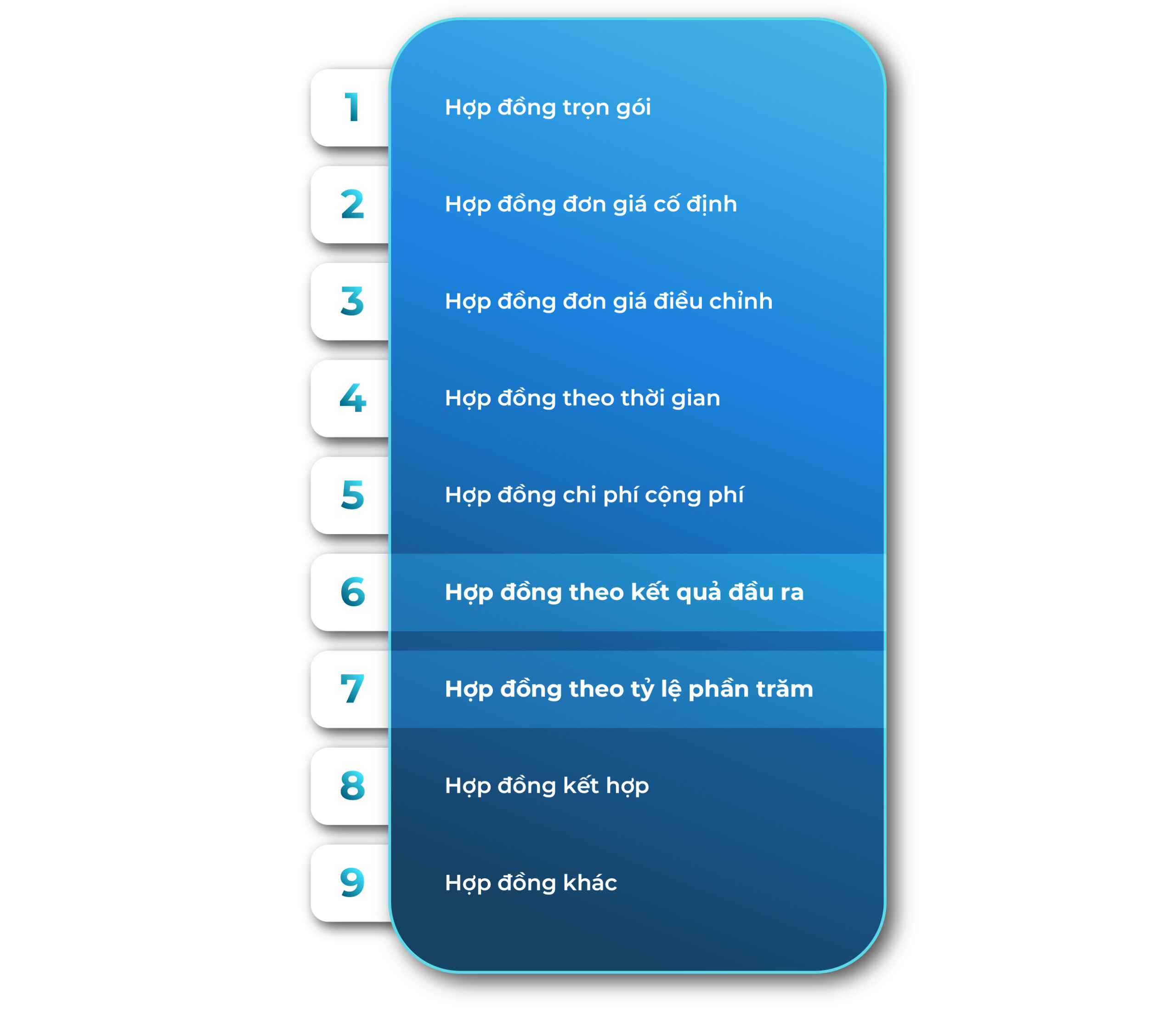 - Một số loại hợp đồng hiện đại phù hợp với thực tiễn được đề xuất bổ sung vào Dự thảo Nghị định lần này, điển hình là Hợp đồng theo kết quả đầu ra và Hợp đồng theo tỷ lệ phần trăm.