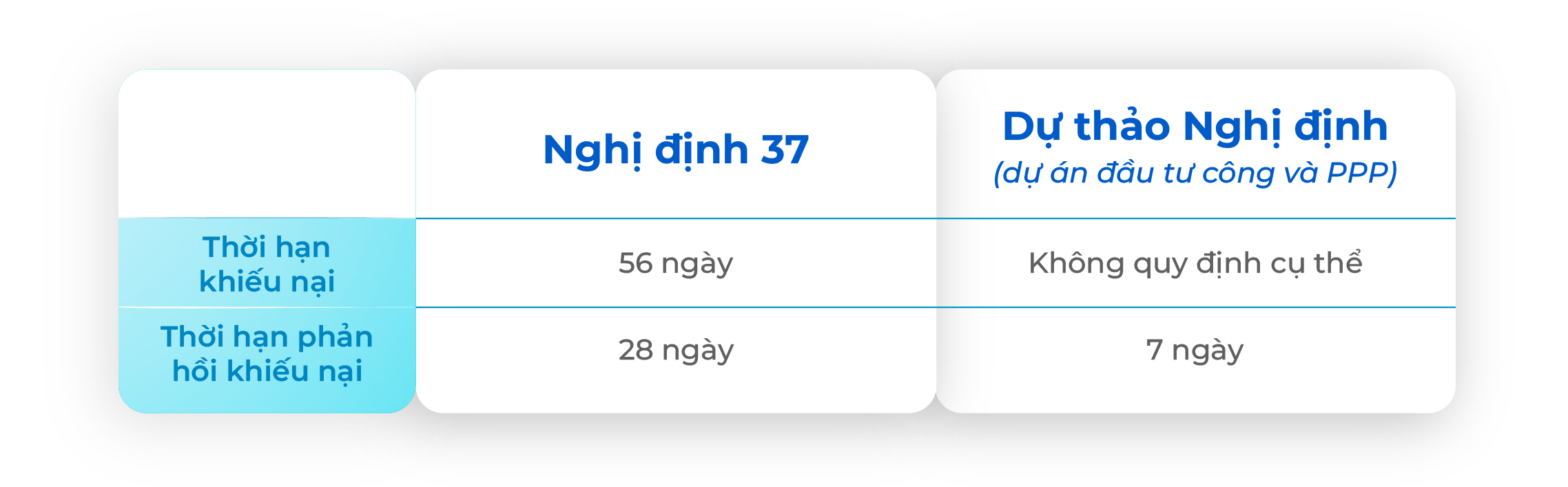 Thời hạn xử lý khiếu nại giữa Nghị định 37 và Dự thảo Nghị định (áp dụng với dự án đầu tư công và PPP)