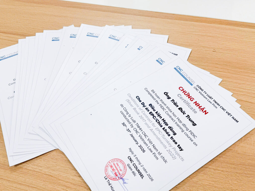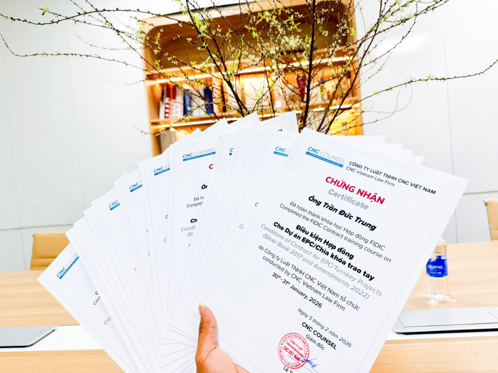 Trong bối cảnh đó, CNC đã phối hợp cùng IPCEC tổ chức Khóa học “Áp dụng Hợp đồng FIDIC EPC cho Dự án Điện gió”, diễn ra trong 02 ngày (30–31/01/2026) tại Hà Nội, với 48 học viên tham dự. Giảng viên đứng lớp cho chương trình đào tạo Hợp đồng FIDIC EPC lần này là Luật sư Lê Thế Hùng và Luật sư Trần Phạm Hoàng Tùng.