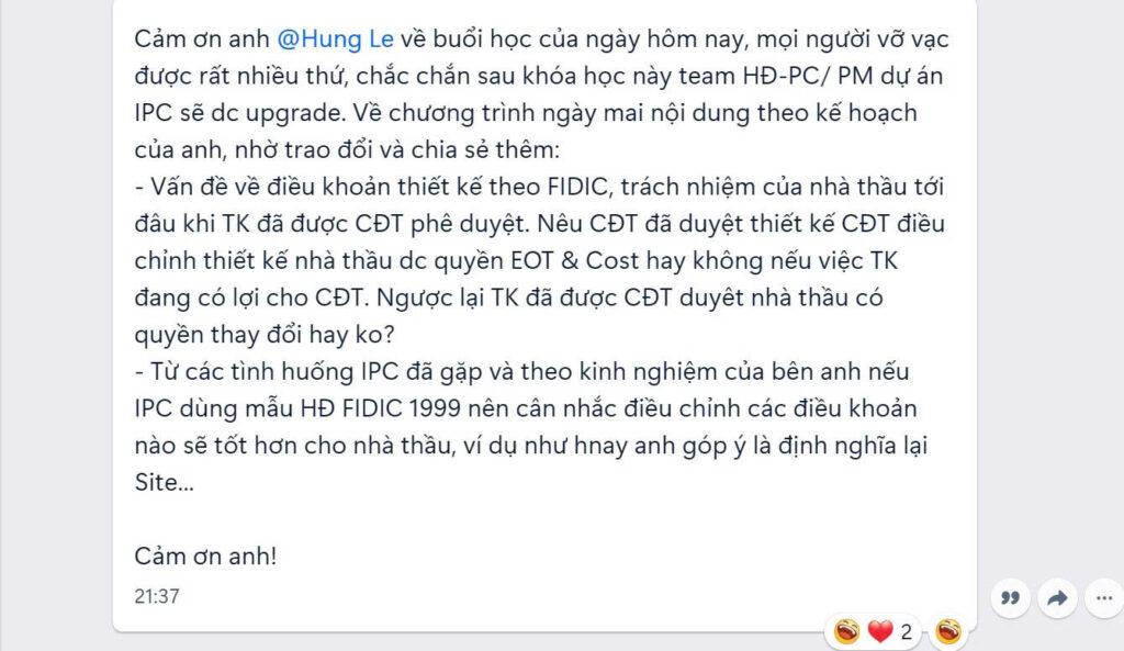 Nhận xét real-time, rất thực của các học viên tham dự Khóa học Áp dụng Hợp đồng FIDIC EPC vào Dự án Điện gió