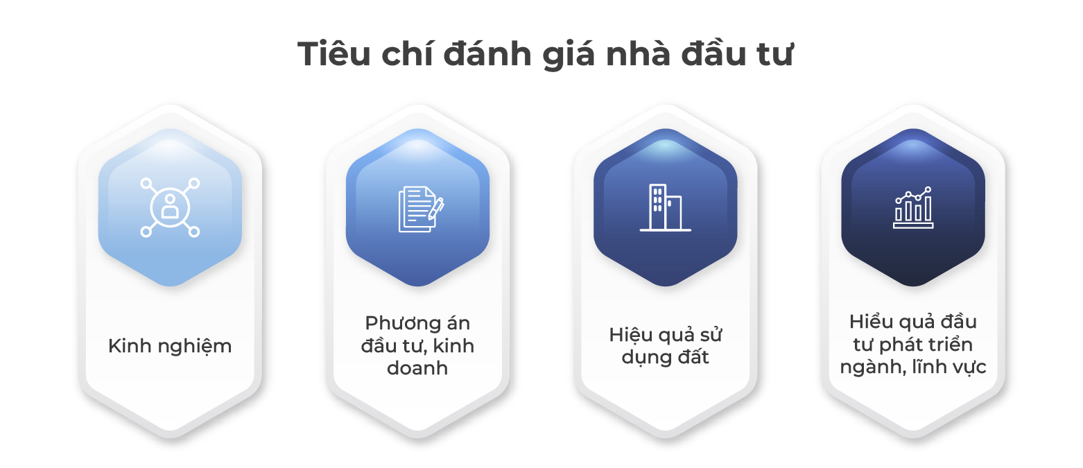 Các tiêu chí đánh giá trong quá trình lựa chọn nhà thầu/nhà đầu tư bao gồm nhưng không giới hạn bởi: